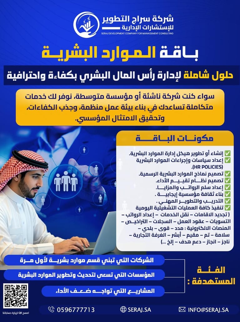 شركة سراج التطوير قدمت لنا استشارات مهنية ساعدتنا في تحقيق أهدافنا بكفاءة عالية.